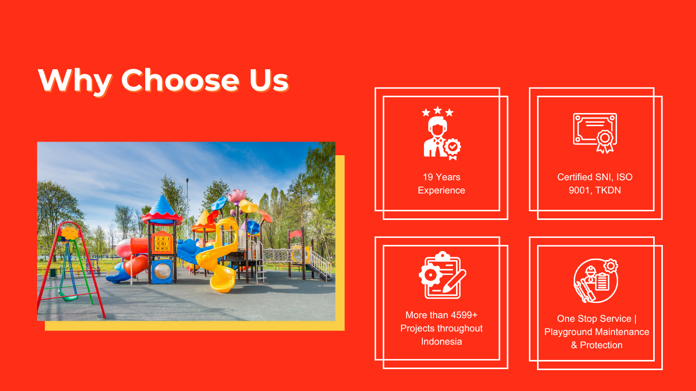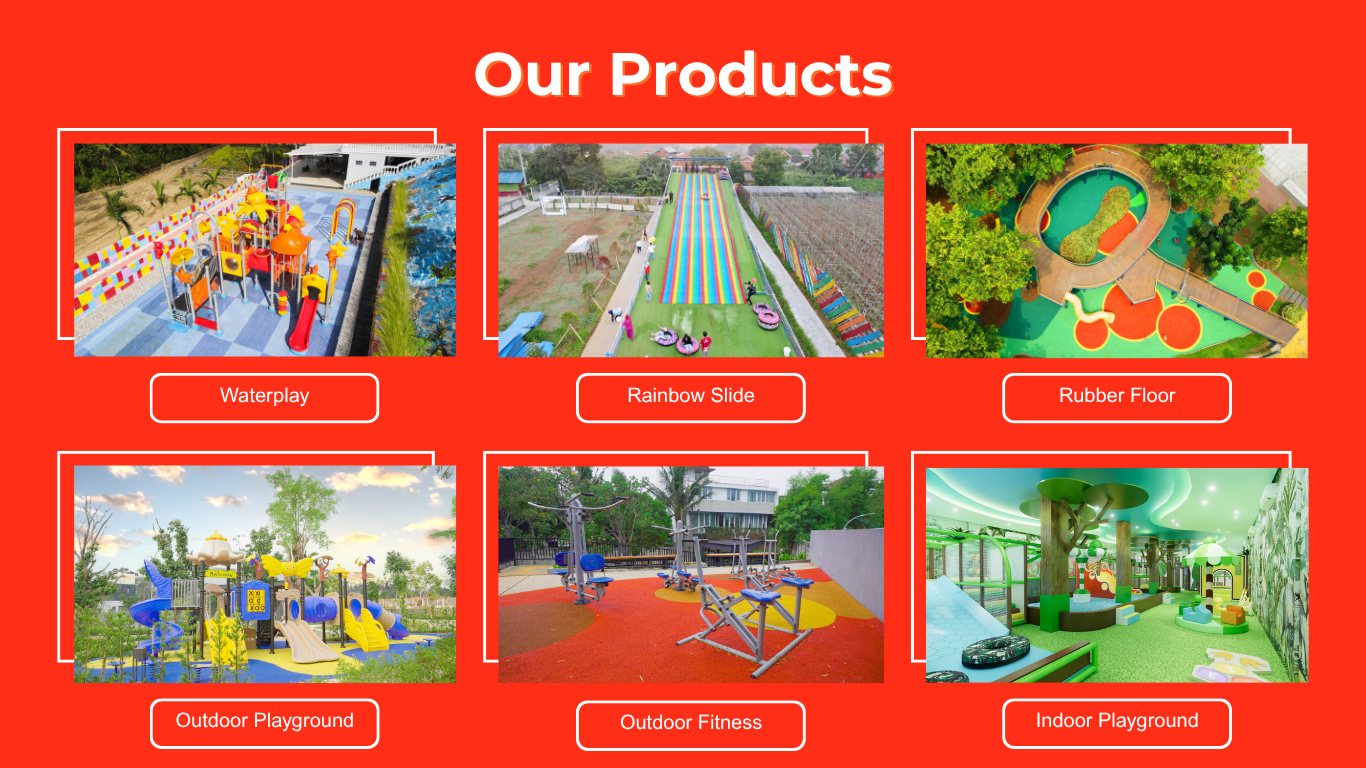 Ana ürünler:Kapalı oyun alanı, açık oyun alanı, su oyun alanı, kauçuk zemin, açık alan sporları